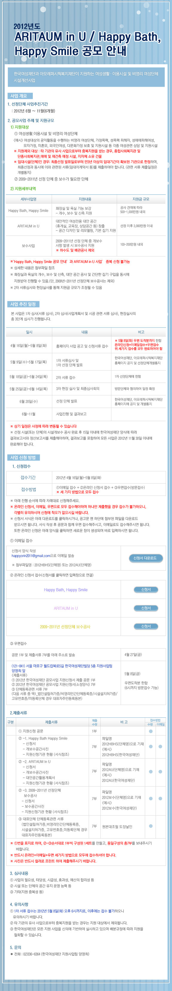 2012년도 ARITAUM In U/Happy Bath, Happy Smile 사업공고