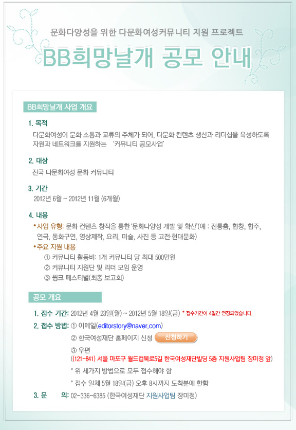 다음글 > 2012 BB희망날개 커뮤니티 선정 결과 안내